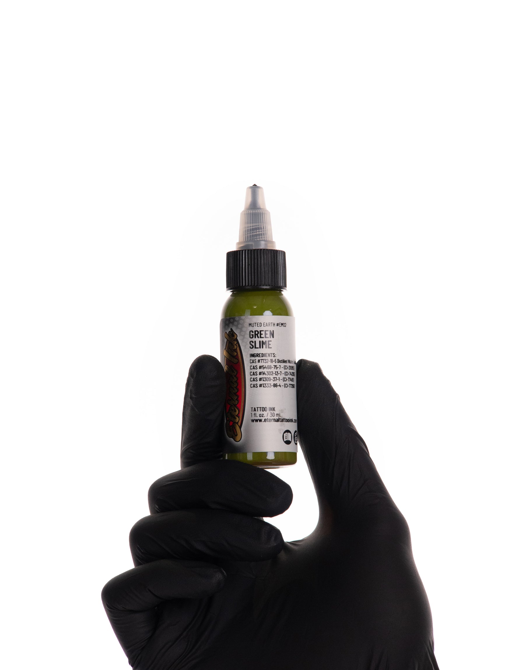 Eternal Green Slime 1ozLas tintas artísticas Eternal son sinónimo de calidad y seguridad. Son 100% veganas, esterilizadas, con pigmentos naturales y garantizan colores vibrantes y duraderos. Perfectas para artistas que buscan consistencia y resultados profesionales en cada tatuaje. Elige Eternal Ink para una cobertura excepcional y una profundidad de color inigualable.
