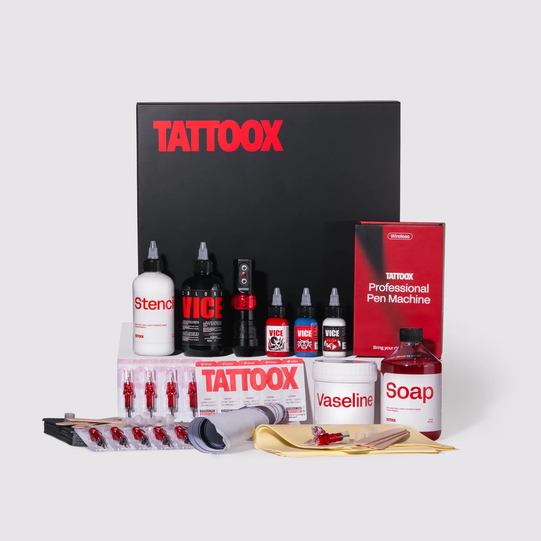 • Vaselina Tattoox 350g: Para proteger y suavizar la piel durante el tatuaje.