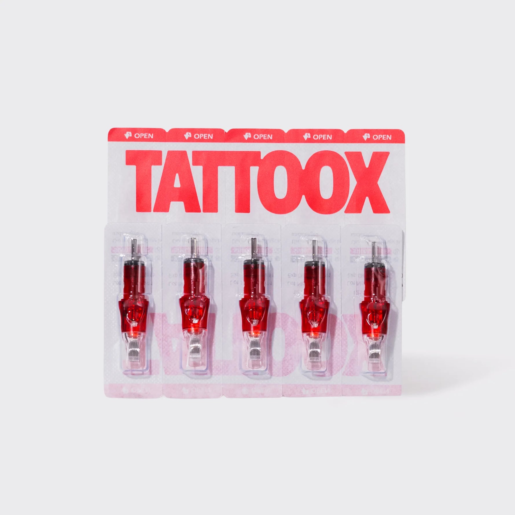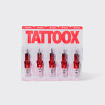 • Cartuchos TATTOOX: Variedad de cartuchos (5 de cada), incluyendo 3RL, 7RL, para líneas finas y detalles precisos, y añadiendo 7RS, 11RM, y 23RM para técnicas avanzadas.