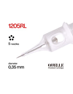 QUELLE Cartuchos 5RL. Los cartuchos QUELLE 5RL ofrecen una combinación perfecta de versatilidad y precisión. Son ideales para delineados finos y detallados, y su relación calidad-precio los hace una opción inmejorable para cualquier artista del tatuaje.